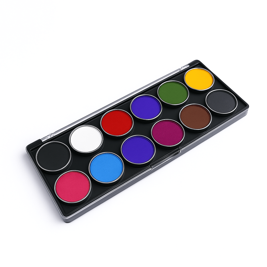 Es una paleta hipoalergénica base agua ideal para creaciones en maquillajes artísticos que puede ser utilizada en niños para el arte de pintacaritas, body paint y fx.